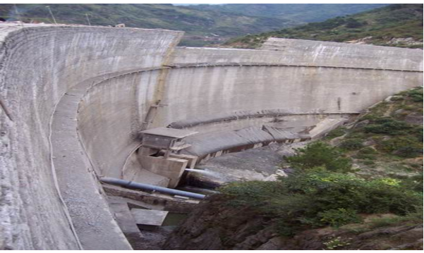 該工程位于勉縣二道河鄉(xiāng)褒河支流沙溝河中段,壩頂寬4.0m、底寬16m、壩高55m、壩頂弧長220.78m,為變?nèi)碾p曲拱壩。該壩壩體結(jié)構(gòu)復雜,此雙曲拱壩結(jié)構(gòu)為陜西第一座,技術(shù)含量較高。該工程于1998年9月1日開工,2003年1月31日竣工。