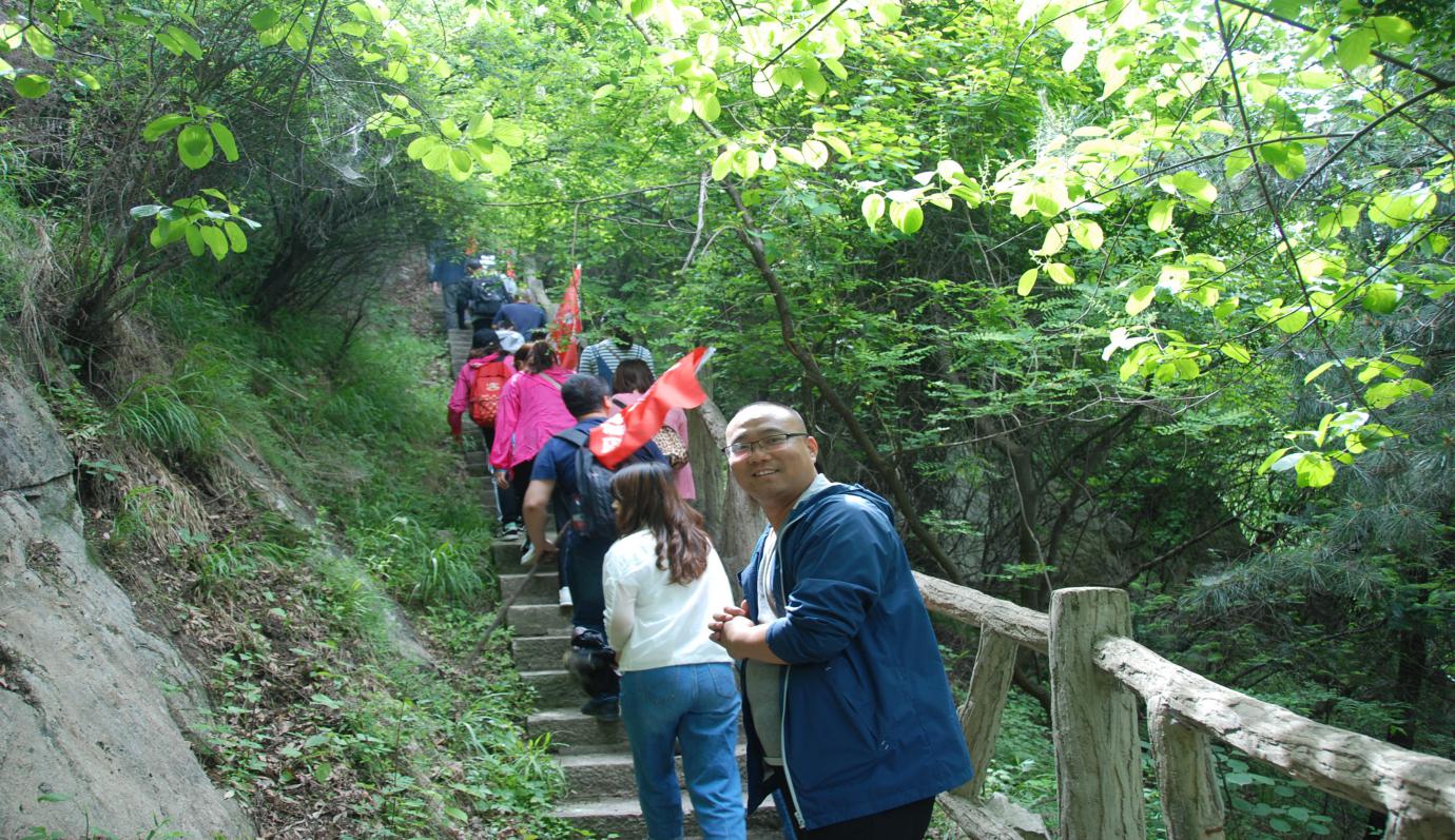 大家相互幫助,相互鼓勵,爬山過程中沒有一名職工放棄、松懈。總支書記王長隨更是以身做則,帶領(lǐng)大家奮勇攀登。